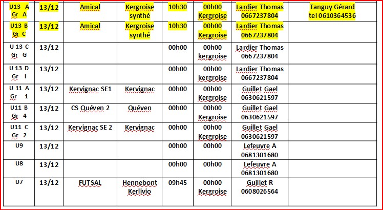 Calendrier jeunes début de saison