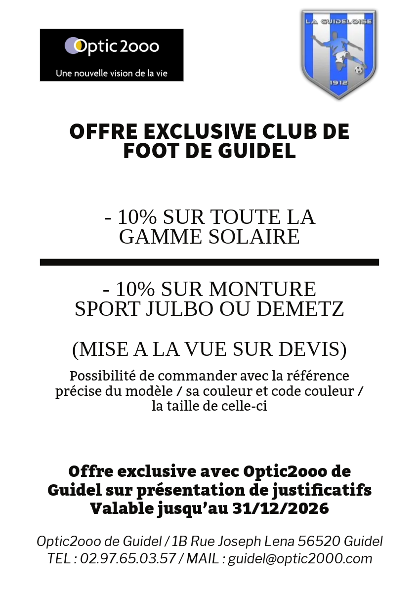 Profitez de l'offre réservée aux licenciés de la Guideloise Football :